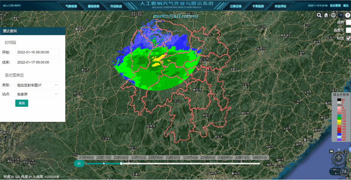 为提高人工影响天气信息综合管理能力和作业指挥能力,设计开发了基于气象大数据云平台的人工影响天气精准作业指挥与展示系统。系统基于国内自主研发的GIS平台DMGIS,集成湖南省高分遥感地理信息数据、人影信息数据以及气象监测数据,实现湖南人影作业全域精细化三维地理场景的漫游展示,人影作业飞行轨迹回放,作业效果评估,以及人影、气象信息空间可视化分析展示等功能,同时系统可实现三维GIS的基本功能。系统的建设为湖南人影业务完全三维空间GIS可视化和安全作业提供了技术支持。